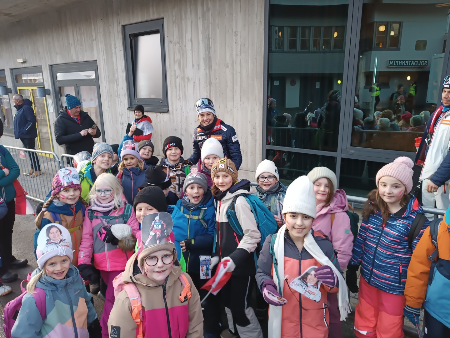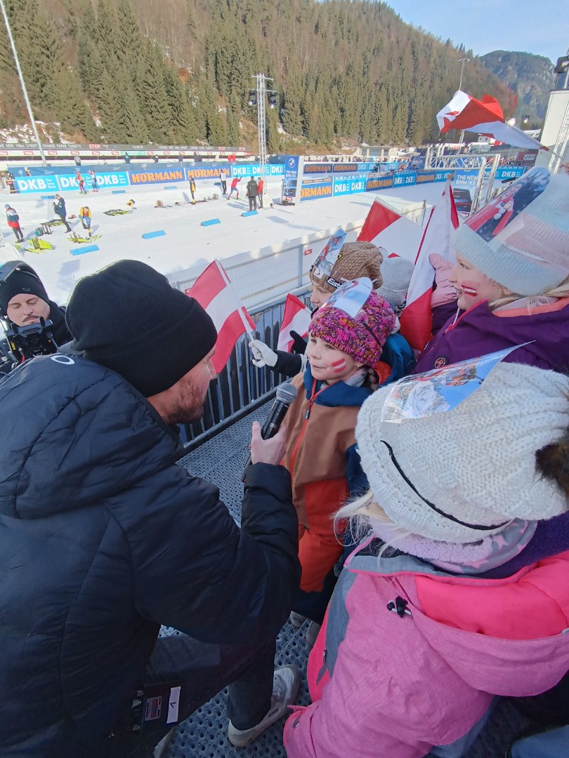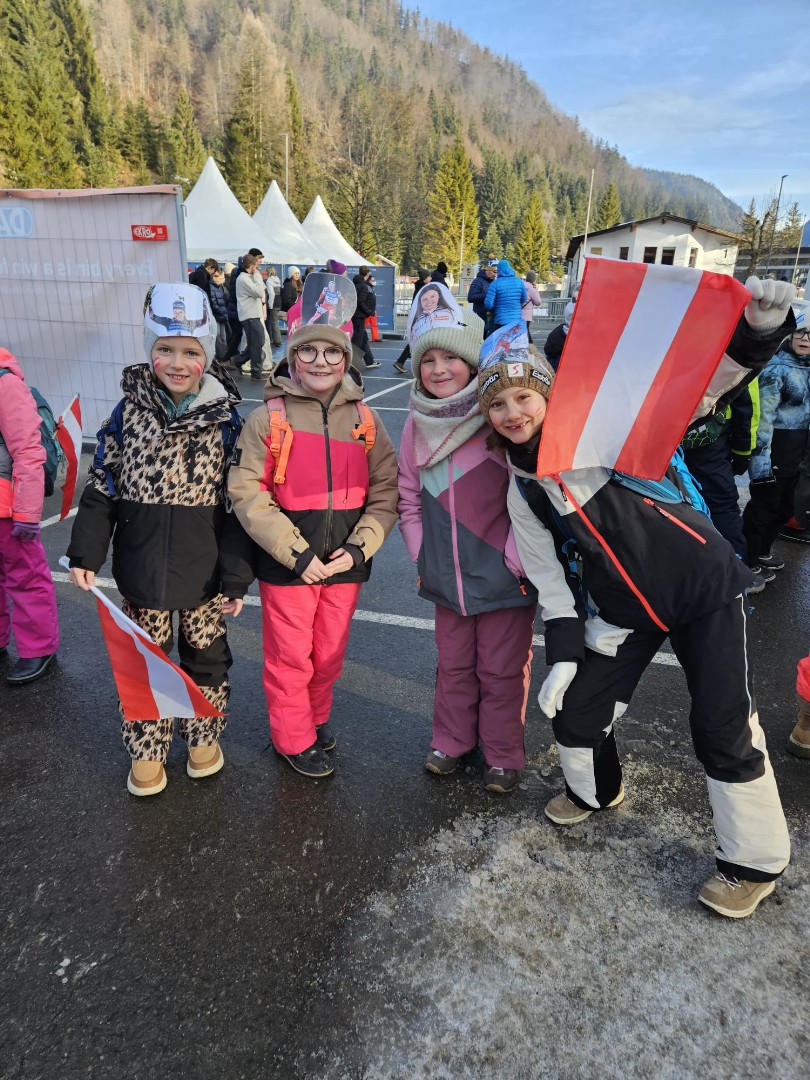 Am Freitag, den 12.12.25 erlebte die 3a einen unvergesslichen Tag beim Biathlonweltcup in Hochfilzen. Wir fuhren bequem mit dem kostenlosen Shuttle zur Veranstaltung, wurden für ein Gewinnspiel in Hochfilzen fotografiert und erhielten kostenlose Tickets für die Tribüne B. Außerdem gab es eine leckere Jause im Leistungszentrum für uns.